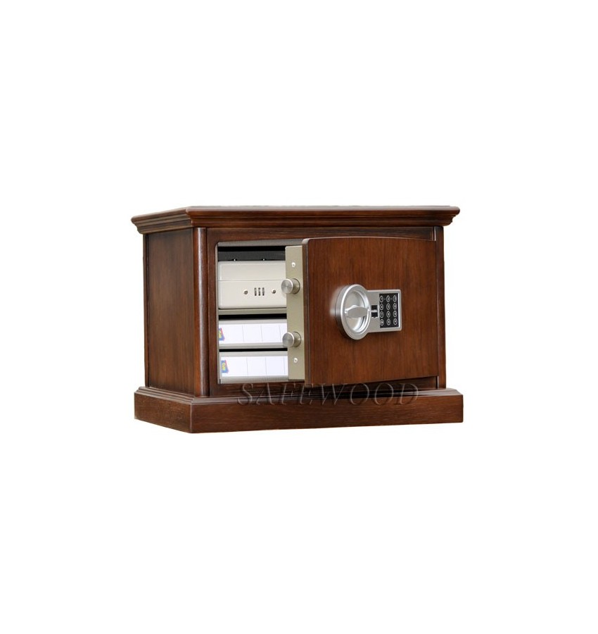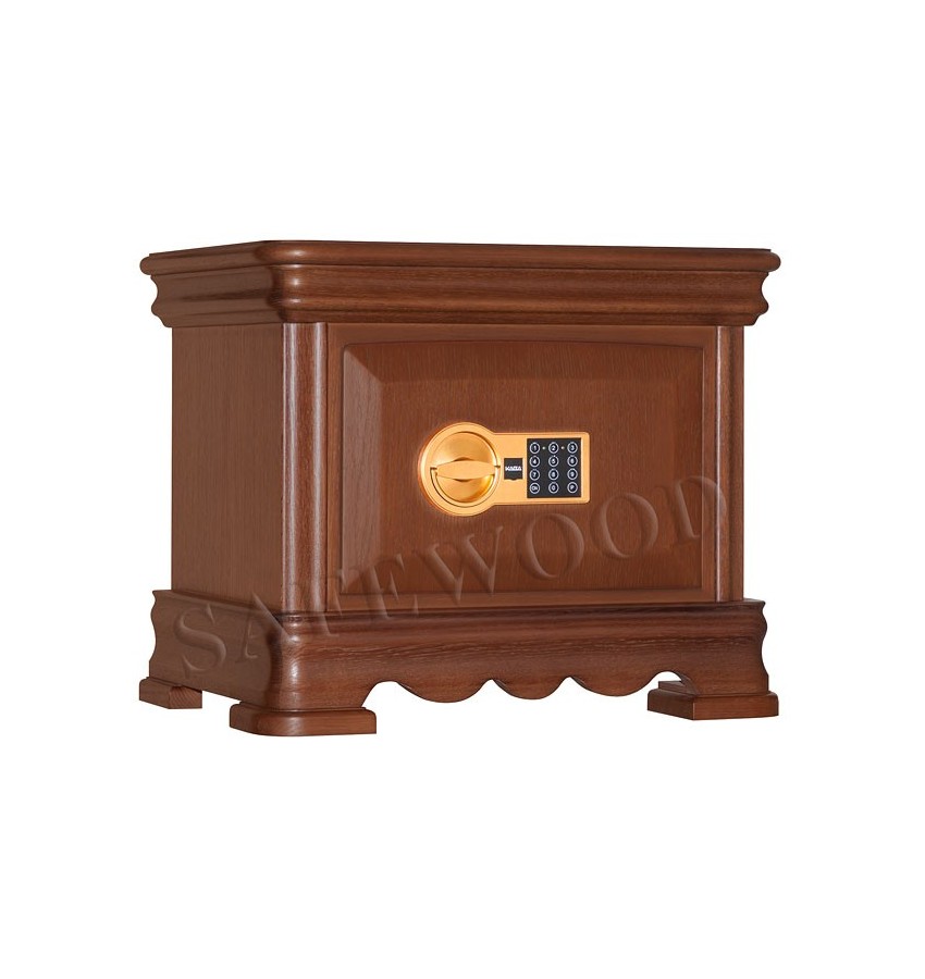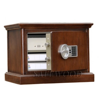 Элитный сейф первого класса с отделкой натуральным деревом. Имеются различные варианты цвета деревянной отделки, а также возможность изготовления по образцу Вашей мебели. Сейф сертифицирован на устойчивость к взлому – 1 класс. Корпус имеет двойные стальные стенки, межстеночный наполнитель – бетон. Металлические детали сейфа имеют гигиенически-безопасное, коррозионно-стойкое полимерно-порошковое покрытие на основе материалов производства ЕС. Safewood – безопасность в изысканном исполнении! Замок Сейф оборудован электронным кодовым замком PS-300 либо высокосекретным электронным кодовым замком Mauer (Германия). Уточняйте при покупке. Такие замки Вы можете по Вашему выбору эксплуатировать в режиме одного пользовательского кода, либо в режиме двух кодов (мастер-код и рабочий код). Вы можете выбрать кодовую панель электронного замка – Хром либо Gold. Стоимость сейфа и гарантия зависит от типа замка и кодовой панели. Цена приведена для случая поставки сейфа с замком PS-300 с кодовой панелью Хром. При поставке с замком PS-300 с кодовой панелью Gold стоимость сейфа увеличивается на 16300 рублей. При поставке с замком Mauer (Германия) с кодовой панелью Хром стоимость сейфа увеличивается на 10900 рублей. При поставке с замком Mauer (Германия) с кодовой панелью Gold стоимость сейфа увеличивается на 22300 рублей. Кодовые панели Gold имеют покрытие золотом 24 карата. На кодовую панель Mauer Gold имеется европейский сертификат. При поставке сейфа с электронным кодовым замком замком PS-300 ( с любой кодовой панелью) - гарантия на сейф – 5лет, гарантия на замок составляет 2 года,. При поставке сейфа с электронным кодовым замком Mauer (Германия) ( с любой кодовой панелью) гарантия– 5лет, как на замок, так и на сейф Защита Сейф имеет усиленную коробчатую дверь, передний лист двери – сталь 10мм. Петли – внутренние. Имеется защита замка от высверливания твёрдосплавной пластиной. Мощная запирающая система с запиранием по всем сторонам. Вращающиеся ригели диаметром 25мм. Внутреннее устройство Внутри сейфа съёмная полка. Установка Предусмотрена возможность крепления сейфа к полу. Модификации Имеются различные варианты цвета деревянной отделки, а также возможность изготовления по образцу Вашей мебели. New! Для всех моделей сейфов SAFEWOOD теперь возможен новый дополнительный вариант наружной отделки: окрашенное дерево с патинированием. Возможны различные цвета окраски и патинирования. Некоторые примеры – на дополнительном фото. Возможно так же изготовление по образцу Вашей мебели. Возможна поставка любых сейфов Safewood в исполнении NP. Такие сейфы имеют меньшие наружные габариты при сохранении тех же внутренних габаритов.