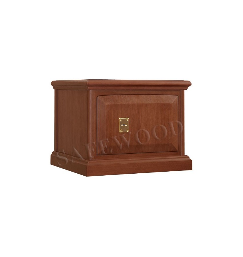 Элитный сейф первого класса с отделкой натуральным деревом. Имеются различные варианты цвета деревянной отделки, а также возможность изготовления по образцу Вашей мебели. Сейф сертифицирован на устойчивость к взлому – 1 класс. Корпус имеет двойные стальные стенки, межстеночный наполнитель – бетон. Металлические детали сейфа имеют гигиенически-безопасное, коррозионно-стойкое полимерно-порошковое покрытие на основе материалов производства ЕС. Safewood – безопасность в изысканном исполнении! Замок Сейф оборудован высокосекретным ключевым замком Mauer (Германия). Защита замка от высверливания твёрдосплавной пластиной. Мощная запирающая система с запиранием по всем сторонам. Вращающиеся ригели диаметром 25мм. Защита Сейф имеет усиленную коробчатую дверь, передний лист двери – сталь 10мм. Петли – внутренние. Внутреннее устройство Внутри сейфа съёмная полка. Установка Предусмотрена возможность крепления сейфа к полу. Модификации Имеются различные варианты цвета деревянной отделки, а также возможность изготовления по образцу Вашей мебели. New! Для всех моделей сейфов SAFEWOOD теперь возможен новый дополнительный вариант наружной отделки: окрашенное дерево с патинированием. Возможны различные цвета окраски и патинирования. Некоторые примеры – на дополнительном фото. Возможно так же изготовление по образцу Вашей мебели. Возможна поставка любых сейфов Safewood в исполнении NP. Такие сейфы имеют меньшие наружные габариты при сохранении тех же внутренних габаритов.