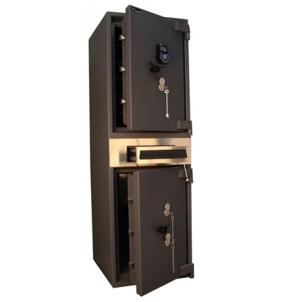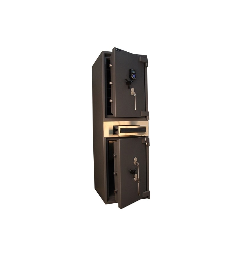 ОписаниеЦвет: Графит Верхний сейф Cash collect имеет 5 перемещаемых полок и вмещает согласно тех. заданию до 12 кассовых ящиков Wincor Nixdorf KA21 либо 7-8 ящиков и свободное место для кассовых дневных операций. Сейф сертифицирован на устойчивость ко взлому Euro Grade 3 ECBS Germany (EN1143-1), CNPP A2P Grade 3 France, ГОСТ 50862-2005, Класс 4. - Top Safe size – Model T28 – External 830 x 580 x 693 / Internal – 700 x 450 x 470 ДоставкаСтоимость доставки по Москве в пределах МКАД: при заказе от 20 000 рублей бесплатно, менее 20000 руб - 1200 рублей Доставка возможна на 15.12.2025 или на 16.12.2025 Доставка по РФ и СНГ: по тарифам транспортных компаний Стоимость разгрузки: 50 руб СамовывозСамовывоз: со склада, после после подтверждения заказа ОплатаОплата: наличными при получении товара, безналичный расчет ( 100% предоплата) Сейф Stahlkraft Defender Pro Cash Collect with Deposit Safe |