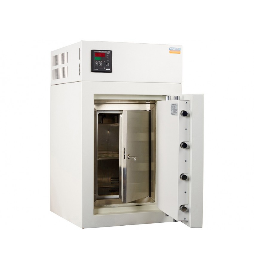 Сейф-термостат TS-3/25 предназначен для хранения наркотических средств, психотропных веществ и их прекурсоров, зарегистрированных в установленном порядке в РФ в качестве лекарственных средств медицинского применения. Медицинское изделие TS-3/25 обеспечивает порядок хранения лекарственных средств, определенный Правилами, утвержденными постановлением Правительства РФ от 31.12.2009 года № 1148. Сейф-термостат медицинский TS-3/25 имеет следующие потребительские свойства: • Выполняет условия хранения лекарственных средств, определенные Фармакопеей РФ: - или как в холодильнике; - или как в прохладном месте; - или при температуре воздуха окружающей среды. • Обеспечивает устойчивость к взлому при помощи: - многослойной защиты стенок и двери сейфа; - усиленной ригельной системы запирания; - защиты от высверливания и выбивания замка KABA MAUER и ригелей. • Реализует утвержденные Правила хранения лекарственных средств: - в изолированных помещениях третьей или четвертой категории с климатическими условиями УХЛ 4.1; - при прикреплении TS-3/25 к полу и т.д. • Обладает запираемой рабочей камерой, выполненой из нержавеющей стали, и оснащенной: - светодиодным освещением; - звуковой сигнализацией открывания двери. • Оборудуется измерителем-регулятором, осуществляющим: - регулирование установленного значения температуры хранения; - одновременную индикацию текущего значения регулируемой и заданной температуры хранения; - выход в информационную сеть стандарта RS-485; - корректировку значения температуры хранения в процессе работы изделия; - защиту настроек прибора; - конфигурирование с лицевой панели прибора. • Оснащается полупроводниковыми термоэлектрическими модулями, которые обеспечивают: - заданные тепловые условия хранения; - низкий уровень шумов и энергопотребления; - минимизацию габаритов и веса изделия; - повышение экологической безопасности. • Комплектуется выходным разъемом RJ-45 категории 5е, который позволяет: 1. Организовывать аварийную сигнализацию: - открывания двери рабочей камеры; - отключения напряжения сети электропитания; - отключения кабеля связи. 2. Применять в информационной сети RS-485: - приборы учета значений температуры хранения; - конфигурирование изделия с ПК; - архивирование измеряемых значений температуры хранения; - интегрирование изделия в АСУ и т.д. • Медицинское изделие TS-3/25 оснащается дополнительными узлами в любом варианте комплектации под заказ: - преобразователем сигналов интерфейса USB - RS-485; - преобразователем сигналов интерфейса Ethernet - RS-485; - Wi-Fi модулем; - электронным счетчиком открывания двери сейфа; - EL-кодовым электронным замком LA GARD (class B, ECB-S) или PS 600 (ПРОМЕТ, класс В, ГОСТ, ECB-S). • Сейфы-термостаты медицинскиеTS-3/25 имеются в наличии на складе или изготавливаются под заказ. • Сейф-термостат медицинский TS-3/25 cоответсвует ТУ 9452-004-72063897-2013