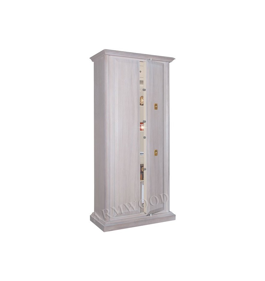Элитный оружейный сейф с отделкой натуральным деревом. Сейфы полностью удовлетворяют требованиям МВД к хранению оружия. Универсальный сейф, может использоваться как оружейный сейф либо как личный (офисный) сейф. Замок Сейф оборудован двумя сертифицированными ключевыми замками: замок 4-го класса!!! повышенной взломостойкости и секретности (1,5 миллиона комбинаций) плюс замок 3 класса. Замки разработаны Cisa (Италия). По желанию заказчика возможна поставка сейфов с замками производства Германии: Mauer или Wittkopp. Сейф имеет мощные ригельные системы (две вертикальные и горизонтальную) с запиранием по всем сторонам. Защита Двери сейфа имеют коробчатую конструкцию для дополнительного усиления. Петли внутренние из стали 6мм. Усиленный корпус. Внутреннее устройство Внутри сейфа два запираемых (патронных) отделения и вертикальная перегородка которая делит внутреннее пространство сейфа на две области. Внутри «широкой» области 5 съёмных полок и деревянные ложементы на семь стволов. Также в «широкой» области имеются два боковых роликовых зажима с регулируемой высотой установки (для хранения в широкой области восьмого и девятого ствола либо для дополнительной фиксации оружия с оптикой). Внутри «узкой» области 5 съёмных полок и деревянные ложементы на два ствола. Все полки с регулируемой высотой установки. Все ложементы - съёмные. Ружья можно хранить как по одну сторону от перегородки, так и по обе стороны от перегородки. По желанию заказчика возможна поставка с дополнительными полками. Внутренняя отделка Для сейфов ARMWOOD модификации PRIMARY имеется возможность выбрать различные варианты полимерно-порошковых покрытий. Имеются покрытия различных цветов и структур. Некоторые варианты полимерно-порошковых покрытий представлены на дополнительном фото. Установка Предусмотрена возможность крепления сейфа к стене. По желанию заказчика возможна поставка в исполнении, предусматривающем также крепление к полу. Модификации В зависимости от типа внутренней отделки имеются пять модификаций этих оружейных сейфов. Модификация Primary (базовая) имеет деревянные ложементы, отделанные бархатом либо винилискожей либо ложементы «премиум». Модификации Lux и Lux+ имеют дополнительно к базовой - мягкую полную внутреннюю отделку винилискожей или бархатом. Различные варианты цвета бархата и винилискожи по нашему каталогу. Модификация Lux+ отличается от модификации Lux следующим: дополнительная отделка фасадов внутренних запираемых отделений деревом. Модификации Flock и Flock+ - имеют полную внутреннюю мягкую отделку флокированием бархатом (различных цветов по нашему каталогу) и ложементы «премиум». Модификация Flock+ отличается от модификации Flock следующим: 1) дополнительная отделка фасадов внутренних запираемых отделений деревом, 2) перегородка и полки – деревянные (в модификации Flock – они металлические флокированные). Полная внутренняя мягкая отделка защищает Ваше оружие от контакта с металлом, царапин, повреждений и т.п. Металлические детали сейфа имеют гигиенически безопасное износо- и коррозионно-устойчивое полимерно-порошковое покрытие на основе материалов производства Италии или Франции. Имеются покрытия различных цветов и структур: металлики, антики и д.р. По желанию заказчика возможно изменение размеров, конструкции, внутреннего устройства и т.п. Возможн