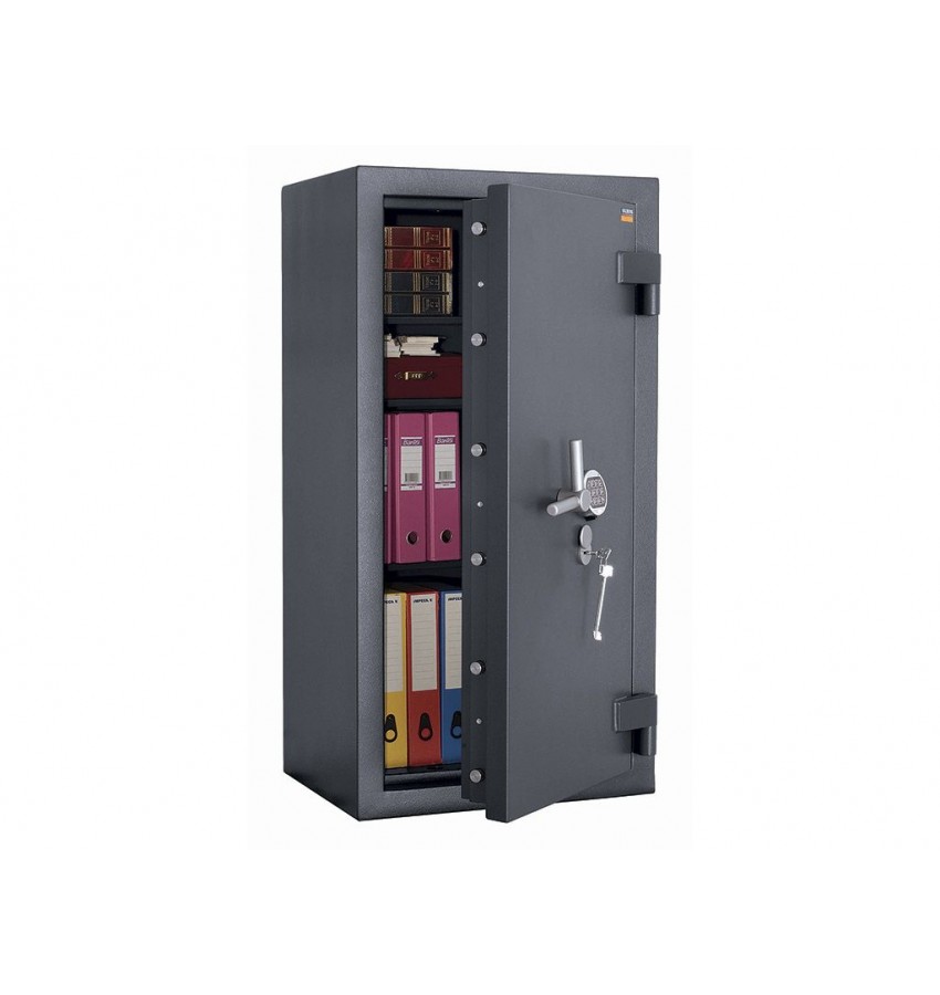 - рекомендованная для хранения сумма - 16 млн рублей для юридических лиц и 32 млн рублей для физических лиц; - конструкция сейфа одобрена ассоциацией Российских производителей сейфов; - 5-й класс устойчивости к взлому по ГОСТ Р 50862-2005; - боковые стенки имеют толщину 55 мм; - дверь имеет толщину100 мм, при этом на защитный слой приходится50 мм;