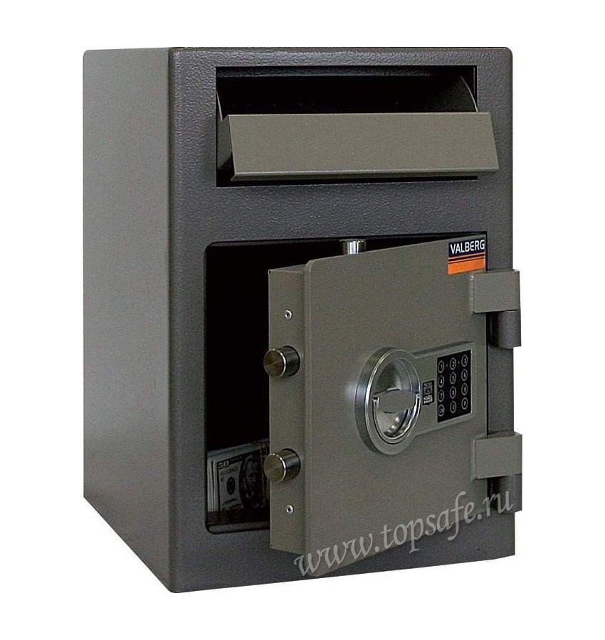 Депозитные сейфы серии Valberg ASD предназначены для хранения небольших сумм денег и документов. Благодаря особенностям конструкции сейфа, ценности и деньги могут быть помещены во внутрь без открывания двери. Данный вариант идеально подходит для торгующих организаций, когда к сейфу имеют доступ несколько человек. Помещать ценности во внутрь сейфа может любой из них, а доступом к содержимому обладает лишь один человек. Из особенностей сейфа следует отметить: - толщина лицевой панели - 5 мм - толщина боковых стенок - 5 мм - 3-сторонняя ригельная система запирания - конструкция поворотного люка обеспечивает защиту от попыток выудить содержимое - предусмотрено анкерное крепление к полу