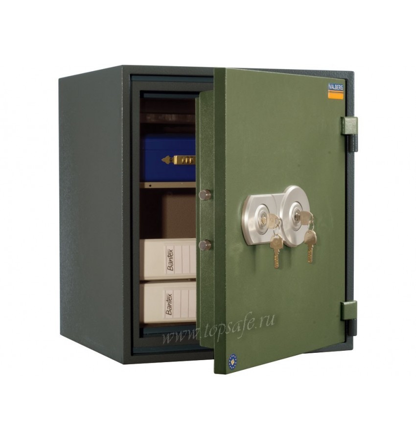 Предназначение: 1. Сохраняет документы и ценности от огня (в случае пожара). 2. Огнестойкость соответствует ГОСТу Р 50862-2005, класс 90Б. 3. Дверь и корпус сейфа залиты запатентованным составом огнестойкого бетона. 4. В конструкции используется тепловой замок, обеспечивающий огнестойкость в районе притвора дверцы сейфа и препятствующий прохождению теплового потока. 5. Огнестойкий уплотнитель по всему периметру дверного проема. 6. Система запирания - ригельная. 7. Сейф оборудован ножками из пластика. 8. Возможность анкерного крепления сейфа к полу (испытание на огнестойкость проводилось с анкерным отверстием).