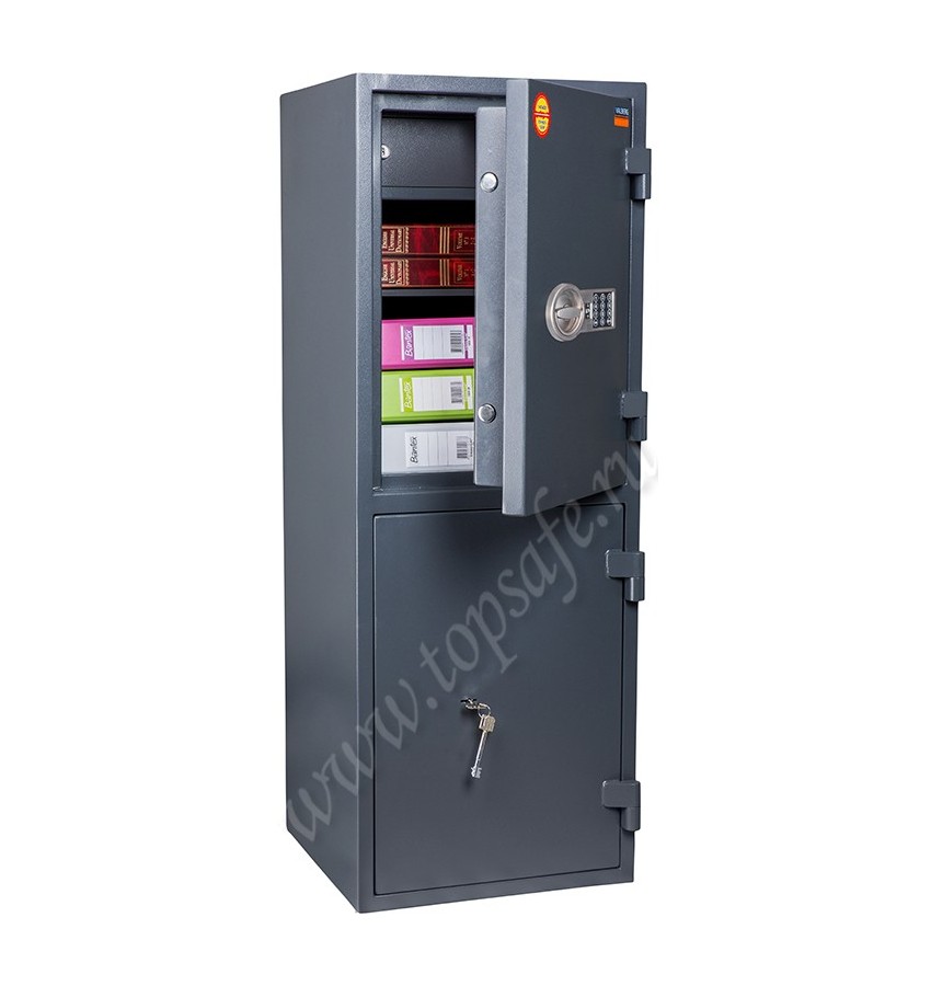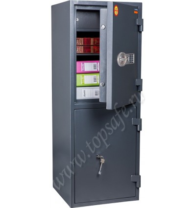 ОписаниеДвухсекционный сейф Valberg Кварцит-120Т/2 EL - идеальное решение для хранения документов, денег и драгоценностей дома или в офисе. Корпус модели залит тяжелым бетоном. Сейф укомплектован двумя замками: электронным PS 300 на верхней секции и ключевым на нижней. Оба замка имеют защиту от высверливания.
