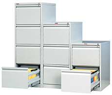 Конструктивно шкафы картотечные металлические для офисов представляют собой прочный корпус, оснащенный выдвижными отсеками. Картотечные ящики снабжены направляющими, которые выдвигаются на всю глубину, облегчая доступ к дальним папкам.