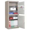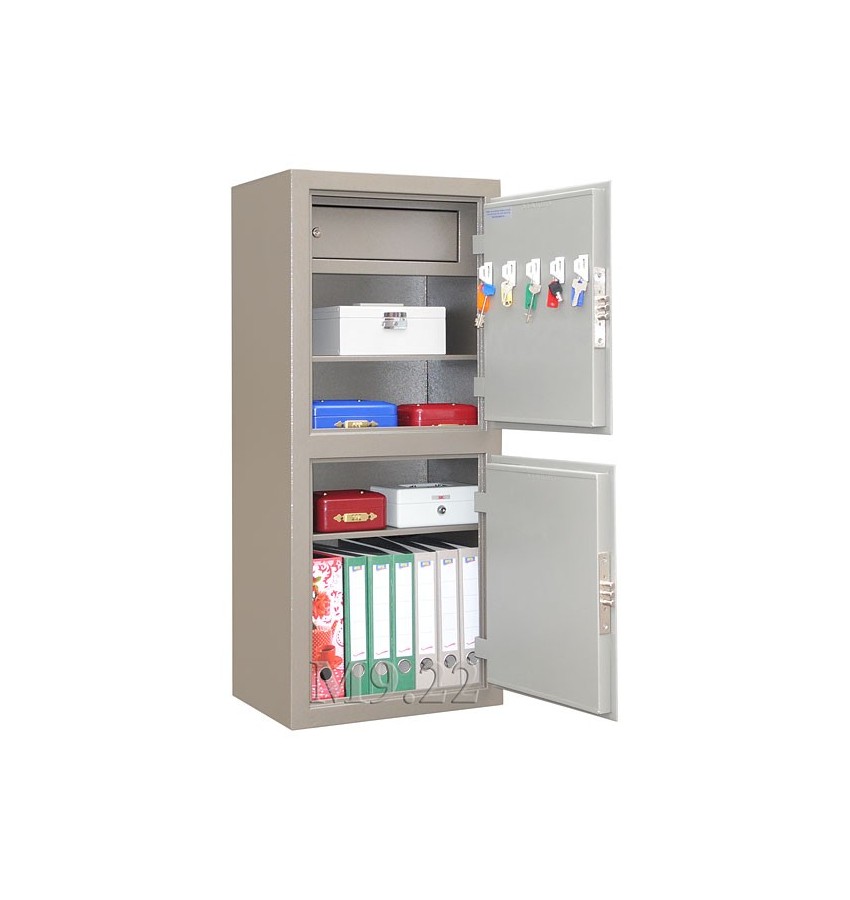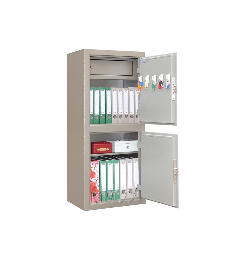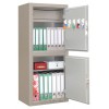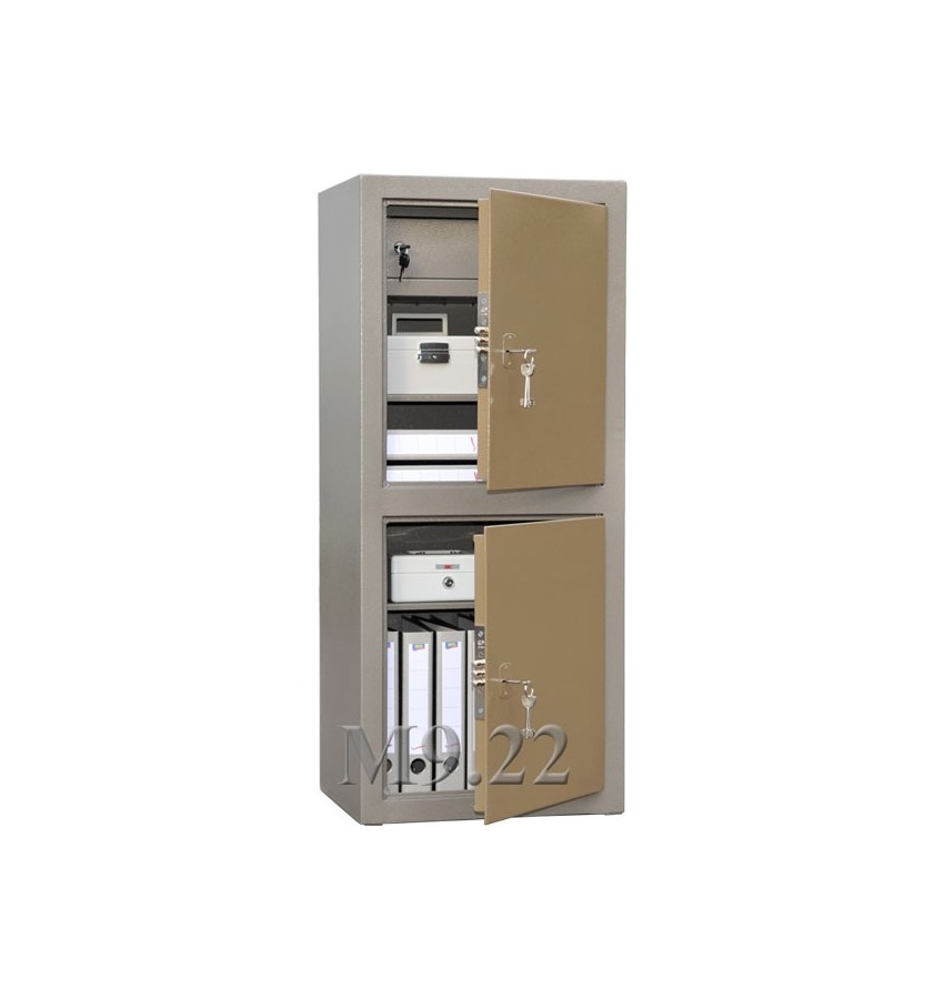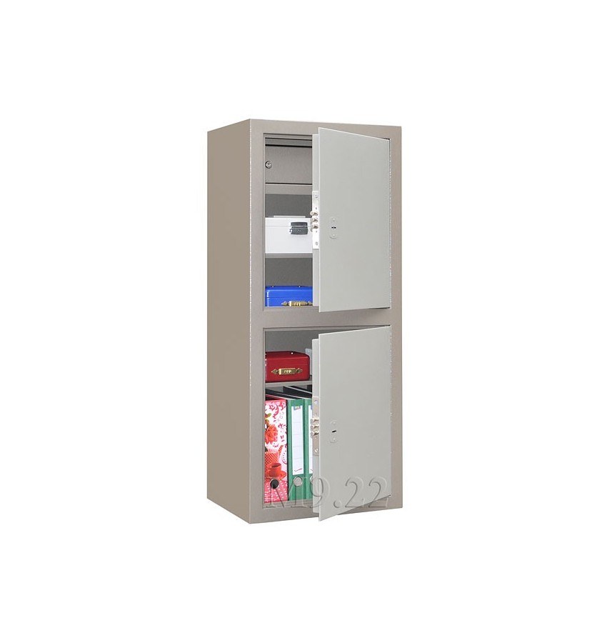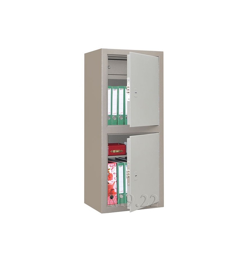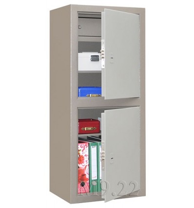 Металлические шкафы представляют собой цельносварную металлическую конструкцию.Изделия имеют сертифицированные полимерно-порошковые покрытия на основе материалов производства Италии и Франции. Покрытия гигиенически безопасны, имеют высокую коррозионную стойкость и износостойкость. Двухсекционный шкаф. Замок Шкафы оборудованы сертифицированными трехригельными сувальдными ключевыми замками 2 класса, с секретностью не менее 250 тысяч. Защита Двери металлических шкафов имеют коробчатое строение для дополнительного усиления. Петли - внутренние. Внутреннее устройство Внутреннее запираемое отделение (в верхней секции) и две съёмные полки, в верхней секции одно посадочное место под полку, в нижней секции два посадочных места. Модификации Имеются покрытия различных цветов и структур. Возможны различные варианты цветового дизайна, например: корпус и двери имеют одинаковое покрытие, либо корпус и двери имеют покрытия разного цвета. По желанию заказчика возможно изменение внутреннего устройства, размеров изделия, количества и типа замков а также изготовление несерийных изделий по эскизам заказчиков. Дополнительная информация Внимание. На шкафы с полимерно-порошковым покрытием 14М - скидка 5%.