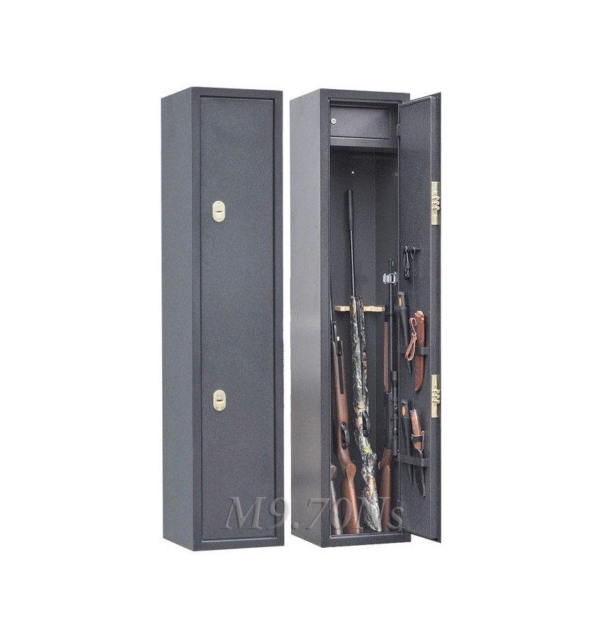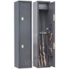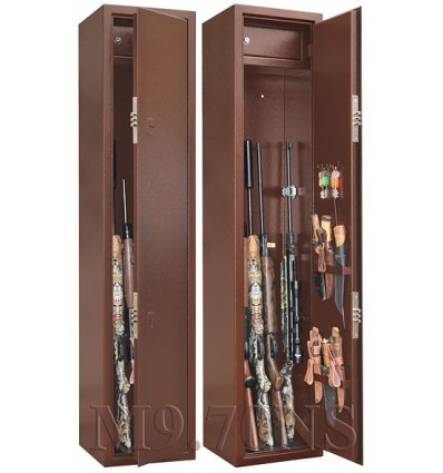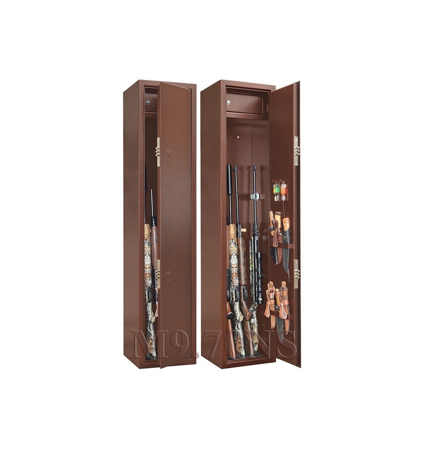 ОписаниеПолностью удовлетворяют требованиям МВД к хранению оружия физическими лицами. Изделия имеют сертифицированные полимерно-порошковые покрытия на основе материалов производства Италии и Франции. Покрытия гигиенически безопасны, имеют высокую коррозионную стойкость и износостойкость. Имеются покрытия различных цветов и структур. Возможны различные варианты цветового дизайна, например: корпус и двери имеют одинаковое покрытие, либо корпус и двери имеют покрытия разного цвета. Замок Шкафы оборудованы двумя сертифицированными трёхригельными замками второго класса. Защита Цельносварная металлическая конструкция. Усиленный корпус. Двери металлических шкафов имеют коробчатое строение для дополнительного усиления. Петли - внутренние. Внутреннее устройство Шкаф имеет внутреннее запираемое отделение. Свободное пространство между внутренним отделением и задней стенкой шкафа позволяет разместить в нем стволы, высота которых практически равна высоте шкафа. Внутренняя поверхность двери этого оружейного шкафа имеет специальные держатели и крючки для хранения ножей, шомполов и др. Дно металлического шкафа отделано ковролином. Установка Предусмотрена возможность крепления оружейного шкафа к стене. Кроме того возможна поставка в исполнении, предусматривающем возможность крепления также и к полу. Уточните это с Вашим менеджером. Модификации Дополнительно оружейный шкаф может комплектоваться ложементами, каждый из которых легко устанавливается в любое нужное место. Имеются деревянные (массив) ложементы на любое количество стволов, роликовые ложементы-зажимы производства Германии и другие. Ложементы приобретаются дополнительно со скидкой. Уточните это при заказе с Вашим менеджером. По желанию заказчика возможно изменение внутреннего устройства, размеров изделия, количества и типа замков а также изготовление несерийных изделий по эскизам заказчиков. Дополнительная информация В базовом варианте данный оружейный шкаф поставляется с полимерно-порошковым покрытием "античная медь". На шкафы с полимерно-порошковым покрытием 14М - скидка 5%.