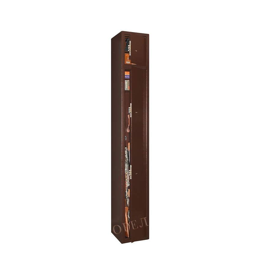 ОписаниеДвухсекционный металлический шкаф для хранения оружия. Полностью удовлетворяет требованиям МВД. Шкаф имеет гигиенически безопасное износо- и коррозионно- устойчивое полимерно-порошковое покрытие на основе материалов производства Италии. Замок Металлический шкаф оборудован тремя сертифицированными трёхригельными замками второго класса. Дверь основной (нижней) секции шкафа оборудована двумя замками, дверь верхней секции оборудована одним замком. Защита Двери имеют коробчатую конструкцию для дополнительного усиления. Передние листы дверей - сталь 2мм.. Внутреннее устройство Внутри верхней секции - съёмная полка. На внутренней поверхности двери верхней секции имеются крючки для хранения связок ключей и т.п. Внутри основной (нижней) секции - имеются 2 съемные полки. На внутренней поверхности двери основной (нижней) секции - имеются крючки для хранения шомполов и ключей, а так же 3 рамки для удобного хранения ножей. Дно этого оружейного шкафа отделано ковролином. Этот шкаф уже укомплектован удобными мягкими ложементами, рассчитанными на хранение 3 стволов. Ложементы изготовлены из экологически чистого эластичного и влагостойкого полимерного материала, устойчивого к деформации и разрыву. Ложементы легко устанавливаются в любое нужное место сейфа при помощи специальной клеевой основы на обратной стороне, и надежно фиксируют оружие внутри сейфа. Установка Предусмотрена возможность крепления оружейного шкафа к стене. Возможна также поставка в исполнении предусматривающем возможность крепления и к полу. ДоставкаСтоимость доставки по Москве в пределах МКАД: при заказе от 20 000 рублей бесплатно, менее 20000 руб - 1200 рублей Доставка возможна на 06.12.2025 или на 07.12.2025 Доставка по РФ и СНГ: по тарифам транспортных компаний Стоимость разгрузки: 350 руб СамовывозСамовывоз: со склада, после после подтверждения заказа ОплатаОплата: наличными при получении товара, безналичный расчет ( 100% предоплата) Шкаф Gunsafe ОРЕЛ |