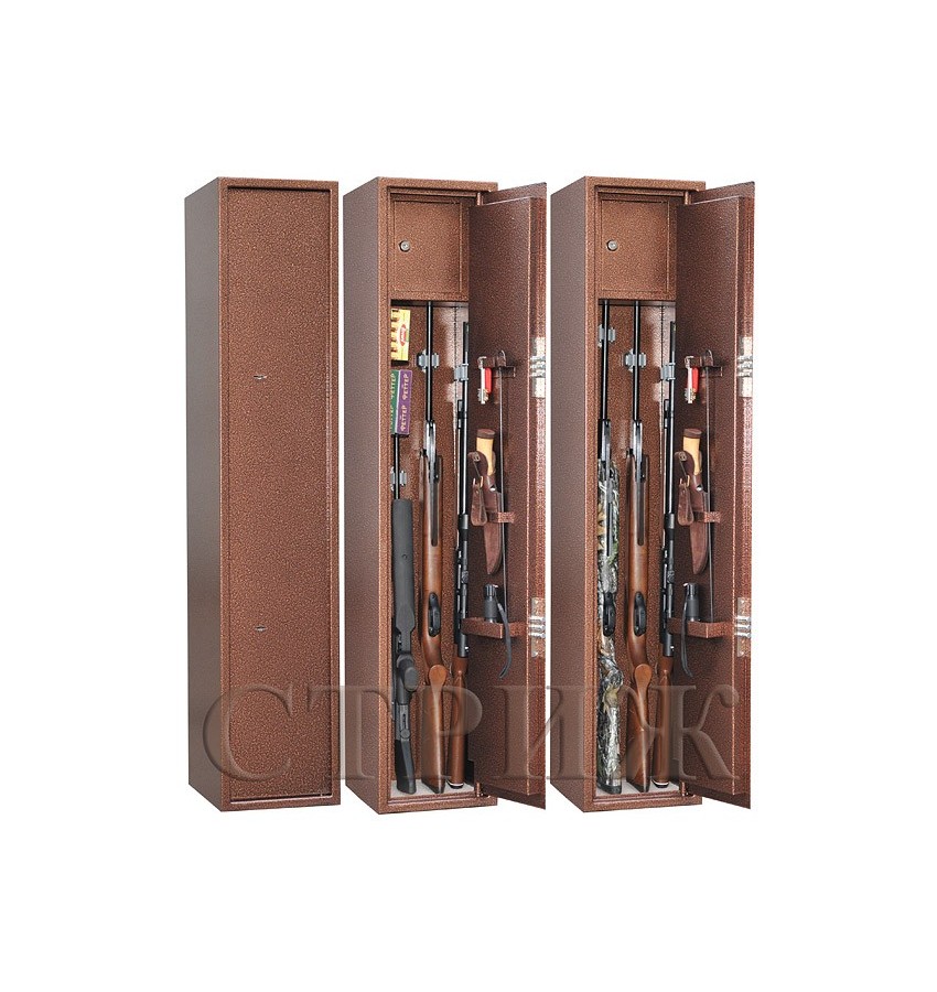 ОписаниеПолностью удовлетворяет требованиям МВД к хранению оружия физическими лицами. Высота хранимых стволов 1235 мм. Металический шкаф имеет коррозионно- и износо-стойкое, гигиенически-безопасное полимернопорошковое покрытие на основе материалов производства Италии. Замок Оборудован двумя трёхригельными замками второго класса. Защита Дверь имеет коробчатую конструкцию для дополнительного усиления.Петли-внутренние. Внутреннее устройство Внутри оружейного шкафа есть запираемое (патронное) отделение и 2 съёмные полки. Внутренняя поверхность двери имеет крючки для хранения шомполов и др., держатель для хранения ножей, а также лоток. Дно этого оружейного шкафа отделано ковролином. Этот шкаф уже укомплектован удобными мягкими ложементами, рассчитанными на хранение 2 стволов. Ложементы изготовлены из экологически чистого эластичного и влагостойкого полимерного материала, устойчивого к деформации и разрыву. Ложементы легко устанавливаются в любое нужное место сейфа при помощи специальной клеевой основы на обратной стороне, и надежно фиксируют оружие внутри сейфа. Установка Предусмотрена возможность крепления сейфа к стене. По желанию заказчика возможна так же поставка в исполнении, предусматривающем крепление и к полу. ДоставкаСтоимость доставки по Москве в пределах МКАД: при заказе от 20 000 рублей бесплатно, менее 20000 руб - 1200 рублей Доставка возможна на 06.12.2025 или на 07.12.2025 Доставка по РФ и СНГ: по тарифам транспортных компаний Стоимость разгрузки: 350 руб СамовывозСамовывоз: со склада, после после подтверждения заказа ОплатаОплата: наличными при получении товара, безналичный расчет ( 100% предоплата) Шкаф Gunsafe СТРИЖ |