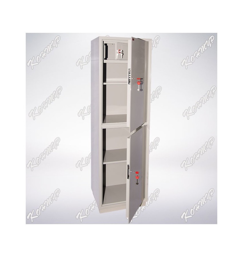 ОписаниеШкаф представляет собой цельносварную металлическую конструкцию прямоугольной формы, соединение элементов которой выполнены методом сварки сплошным швом по контуру прилегания элементов. Горизонтальная перегородка делит шкаф на 2 независимых отделения, запираемых собственной дверью. В верхнем отделении шкафа располагается отсек ограниченного доступа (трейзер), запираемый на замок «почтового» типа и 1 съемная регулируемая по высоте полка, а в нижнем отделении – 1 съемная регулируемая по высоте полка. Корпус и двери шкафа изготовлены из стального листа толщиной 1,5 мм. Двери изнутри усилены панелью коробчатого сечения из стального листа толщиной 0,8 мм. В двери шкафа «КБ-032т» установлен врезной цилиндровый замок, а в двери шкафа «КБС-032т» – врезной сувальдный замок. Шкаф имеет подиум (подставку) высотой 47 мм для возможности размещения шкафа вплотную к стене. Петли шкафа – внутренние. Окраска изделия – полимерное порошковое покрытие, цвет серый. По требованию заказчика возможна установка опечатывающего устройства. Гарантийный срок эксплуатации 2 года. ДоставкаСтоимость доставки по Москве в пределах МКАД: при заказе от 20 000 рублей бесплатно, менее 20000 руб - 1200 рублей Доставка возможна на 14.12.2025 или на 15.12.2025 Доставка по РФ и СНГ: по тарифам транспортных компаний Стоимость разгрузки: 750 руб СамовывозСамовывоз: со склада, после после подтверждения заказа ОплатаОплата: наличными при получении товара, безналичный расчет ( 100% предоплата) Шкаф Контур КБ/КБС 032т |