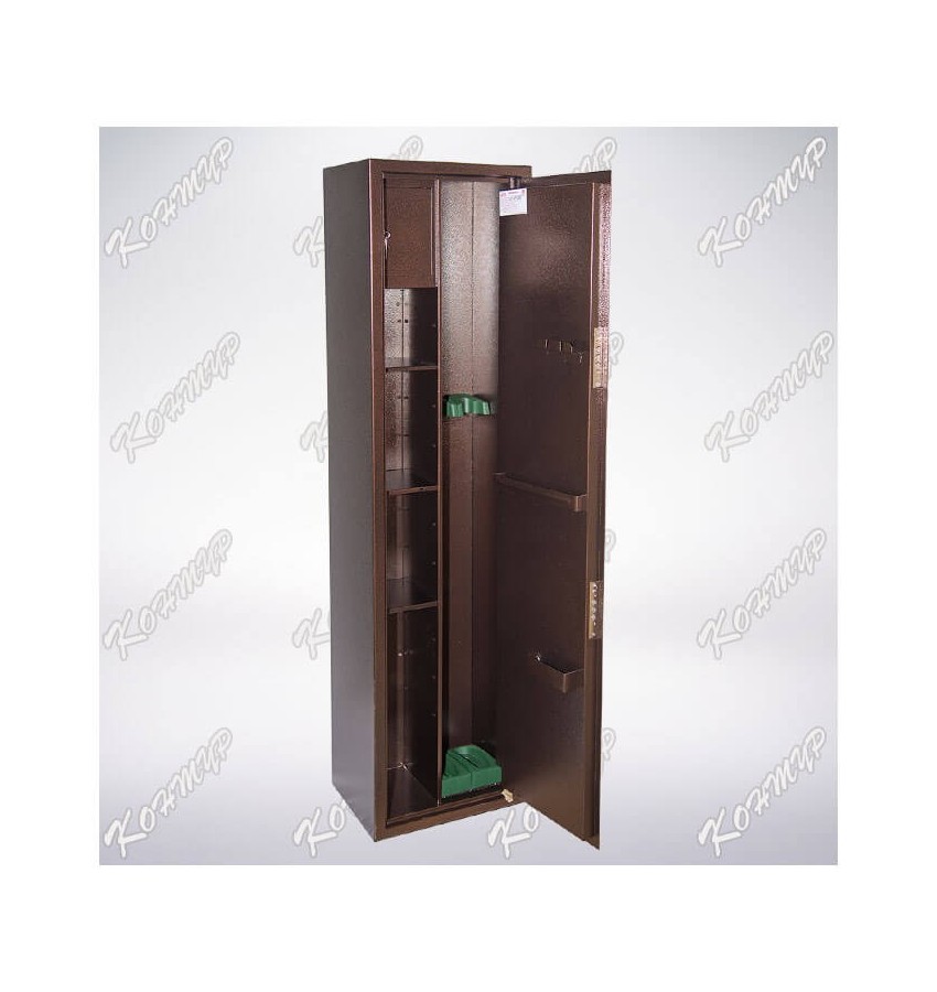 ОписаниеШкаф предназначен для хранения и ограничения несанкционированного доступа к гражданскому и служебному оружию, боеприпасам и принадлежностям. Шкафы представляют собой цельносварную металлическую конструкцию, соединение элементов которой выполнены методом сварки сплошным швом по контуру прилегания элементов. Глубина шкафа, расстояние между полками, угол открывания двери подобраны для рационального размещения оружия, боеприпасов и других принадлежностей. Внутреннее пространство шкафа разделено вертикальной перегородкой на два отсека: в левом отсеке расположены 3 съемные, регулируемые по высоте полки и закрываемое на ключ встроенное отделение (трейзер), предназначенное для хранения патронов, документов и т.д., а правое отделение оборудовано 2-мя комплектами пластиковых ложементов, предназначенных для упорядоченной укладки оружия и позволяющие сберечь оружие от царапин и потертостей. На задней стенке шкафа предусмотрены 2 отверстия Ø 7 мм для возможности крепления его к стене. Корпус шкафа изготовлен из стального листа толщиной 1,5 мм, полотно двери — из листа толщиной 2 мм. Полотно двери изнутри усилено панелью коробчатого сечения из стального листа толщиной 0,8 мм, на которой располагаются дополнительные элементы, такие как: шомполодержатель, скоба, масленка. В шкафу установлено два 8-ми сувальдных замка фирмы «ПРО САМ» (Россия) с классом устойчивости 2 по ГОСТ 5089-2003. Петли – внутренние. Покрытие шкафа – порошковое полимерное, цвет в стандартном исполнении — «Медный антик». Шкаф не подлежит обязательному декларированию или сертификации. ДоставкаСтоимость доставки по Москве в пределах МКАД: при заказе от 20 000 рублей бесплатно, менее 20000 руб - 1200 рублей Доставка возможна на 14.12.2025 или на 15.12.2025 Доставка по РФ и СНГ: по тарифам транспортных компаний Стоимость разгрузки: 350 руб СамовывозСамовывоз: со склада, после после подтверждения заказа ОплатаОплата: наличными при получении товара, безналичный расчет ( 100% предоплата) Шкаф Контур КО-037Т |