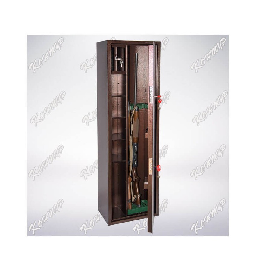 ОписаниеШкаф предназначен для хранения и ограничения несанкционированного доступа к гражданскому и служебному оружию, боеприпасам и принадлежностям. Шкафы представляют собой цельносварную металлическую конструкцию, соединение элементов которой выполнены методом сварки сплошным швом по контуру прилегания элементов. Глубина шкафа, расстояние между полками, угол открывания двери подобраны для рационального размещения оружия, боеприпасов и других принадлежностей. Внутреннее пространство шкафа разделено вертикальной перегородкой на два отсека: в левом отсеке расположены 3 съемные, регулируемые по высоте полки и закрываемое на ключ встроенное отделение (трейзер), предназначенное для хранения патронов, документов и т.д., а правое отделение оборудовано 3-мя комплектами пластиковых ложементов, предназначенных для упорядоченной укладки оружия и позволяющие сберечь оружие от царапин и потертостей. На задней стенке шкафа предусмотрены 2 отверстия Ø 7 мм для возможности крепления его к стене. Корпус шкафа изготовлен из стального листа толщиной 1,5 мм, полотно двери — из листа толщиной 2 мм. Полотно двери изнутри усилено панелью коробчатого сечения из стального листа толщиной 0,8 мм, на которой располагаются дополнительные элементы, такие как: шомполодержатель, скоба, масленка. В шкафу установлено два 8-ми сувальдных замка фирмы «ПРО САМ» (Россия) с классом устойчивости 2 по ГОСТ 5089-2003. Петли – внутренние. Покрытие шкафа – порошковое полимерное, цвет в стандартном исполнении — «Медный антик». Шкаф не подлежит обязательному декларированию или сертификации. ДоставкаСтоимость доставки по Москве в пределах МКАД: при заказе от 20 000 рублей бесплатно, менее 20000 руб - 1200 рублей Доставка возможна на 15.12.2025 или на 16.12.2025 Доставка по РФ и СНГ: по тарифам транспортных компаний Стоимость разгрузки: 750 руб СамовывозСамовывоз: со склада, после после подтверждения заказа ОплатаОплата: наличными при получении товара, безналичный расчет ( 100% предоплата) Шкаф Контур КО-038Т |