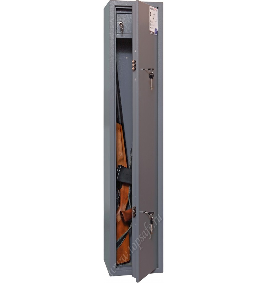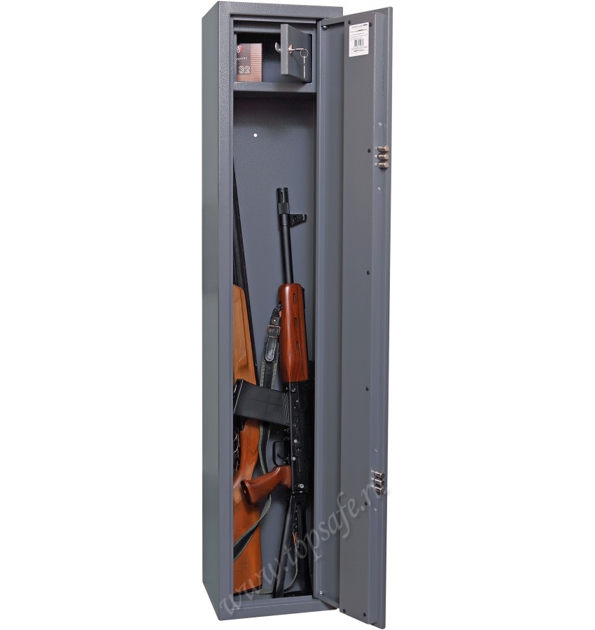 Модель предназначена для хранения двух ружей, а также боеприпасов, документов и прочих мелких вещей. Имеет штатные отверстия для крепления к стене или полу.