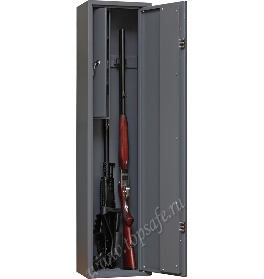 Модель предназначена для хранения трех ружей, а также боеприпасов, документов и прочих мелких вещей. Имеет штатные отверстия для крепления к стене или полу.