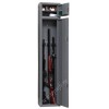 Модель предназначена для хранения трех ружей, а также боеприпасов, документов и прочих мелких вещей. Имеет штатные отверстия для крепления к стене или полу.