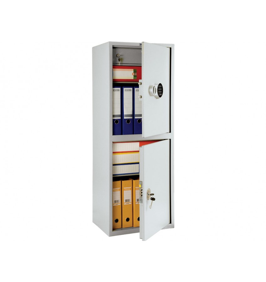 Шкафы Практик предназначены для хранения папок формата "Корона". Верхнее внутреннее отделение закрывается на отдельный ключ. - предназначены для хранения документов в офисе - сварная конструкция из стали - толщина лицевой панели – 1,2 мм - толщина боковых стенок – 1.2 мм - комплектуются замками: базовая комплектация - ключевые замки Практик комплектация EL - ключевые замки + электронный замок PLS-1 (на модели с одной дверью – устанавливается электронный замок, на модели, где две и три двери – электронный замок устанавливается только на верхнюю дверь, на остальные – ключевой) - оборудованы встроенным отделением, запирающимся на ключ - комплектуются переставными полками - поставляются в собранном виде Вместимость: 12 папок Гарантия: 2 года