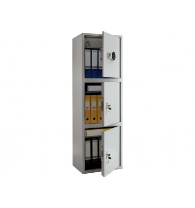 Шкафы Практик предназначены для хранения папок формата "Корона". Верхнее внутреннее отделение закрывается на отдельный ключ. - предназначены для хранения документов в офисе - сварная конструкция из стали - толщина лицевой панели – 1.2 мм - толщина боковых стенок – 1.2 мм - комплектуются замками: базовая комплектация - ключевые замки Практик комплектация EL - ключевые замки + электронный замок PLS-1 (на модели с одной дверью – устанавливается электронный замок, на модели, где две и три двери – электронный замок устанавливается только на верхнюю дверь, на остальные – ключевой) - оборудованы встроенным отделением, запирающимся на ключ - комплектуются переставными полками - поставляются в собранном виде Вместимость: 20 папок Гарантия: 2 года