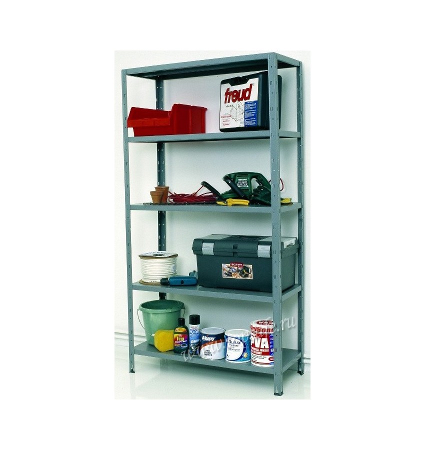 Стеллаж поставляется в разобранном виде. Сборка осуществляется с помощью резьбовых крепежей. Модель имеет порошковое покрытие, цвет - серый полуматовый (RAL 7038).