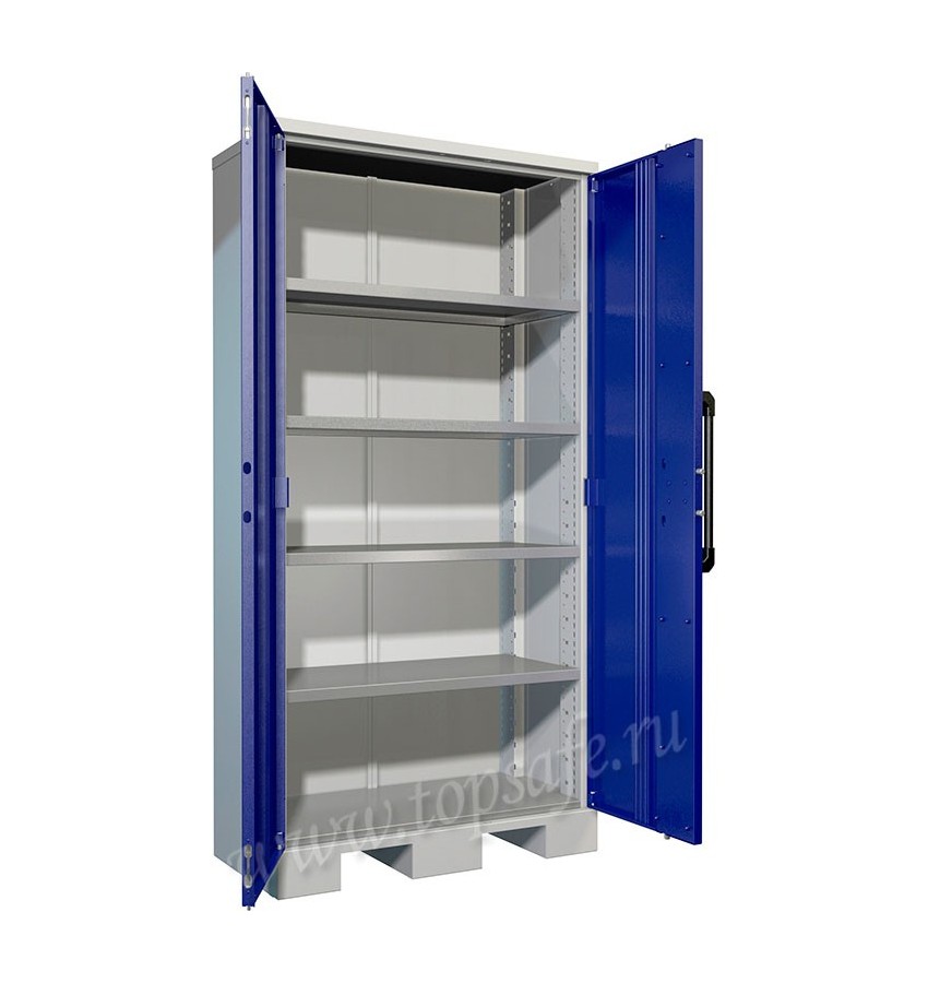 Максимальная нагрузка на шкаф - 800 кг, на полку - 200 кг. Полки изготовлены из оцинкованной стали.