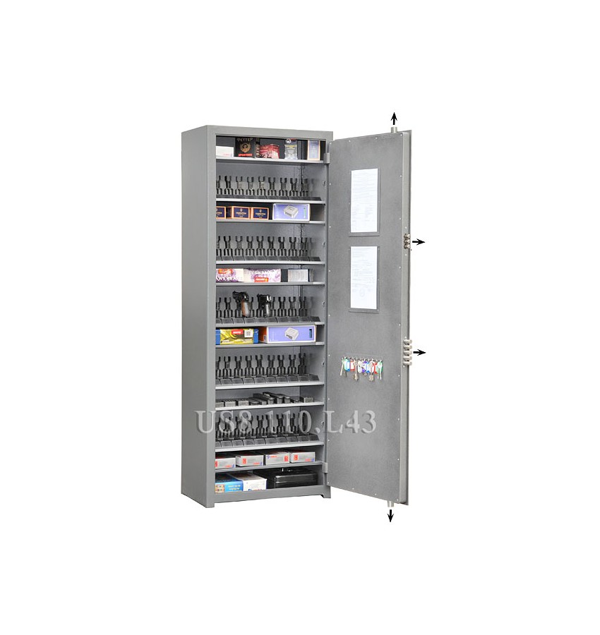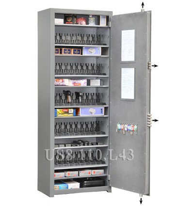 Универсальный сейф, может использоваться как личный, офисный или бухгалтерский сейф, а также как сейф для хранения пистолетов, боеприпасов и т.п. Полностью удовлетворяет требованиям МВД для юридических и физических лиц. Сейф имеет гигиенически безопасное износо- и коррозионно-устойчивое полимерно-порошковое покрытие на основе материалов производства Италии и Франции. Имеются покрытия различных цветов и структур: металлики, антики и д.р. Различные варианты цветового дизайна, например: корпус и двери имеют одинаковое покрытие, либо корпус и двери имеют покрытия разного цвета – выбирайте. Замок В модификации .L43 наружная дверь сейфа оборудована двумя сертифицированными сувальдными ключевыми замками. Нижний замок - пятиригельный замок 4-го класса!!! повышенной секретности (1,5 миллиона комбинаций), и взломостойкости, с мощной трехсторонней (5 ригелей в бок и по одному ригелю вверх и вниз) многоригельной запирающей системой. Верхний замок - трёхригельный, третьего класса, разработан компанией CISA (Италия). Сейф оборудован опломбирующим устройством. Возможна установка дополнительных опломбирующих устройств либо опломбирующих устройств других типов. Защита Изготовлен из стали толщиной 3мм. Дверь усиленная коробчатая. Петли внутренние из стали 6 мм., усиленный корпус. Внутреннее устройство Базовая модель имеет 11 съемных полок с регулируемой высотой установки, но по желанию заказчика сейф может быть изготовлен с дополнительным внутренним запираемым отделением. На внутренней стороне двери сейфа имеются две рамки под списки личного состава (либо опись) и крючки для хранения ключей и т.п. Установка Предусмотрена возможность крепления сейфа к стене (уточнять при заказе). Возможно изготовление в варианте предусматривающем также крепление к полу. Модификации По желанию заказчика сейф дополнительно может комплектоваться пистолетными ложементами (пластиковыми либо деревянными) и колодками под патроны. При покупке вместе с сейфом на данные товары действует специальная скидка. Возможно изменение габаритов, конструкции и внутреннего устройства изделий, а также изготовление несерийных изделий. Возможна поставка сейфов этой серии с установленным датчиком охранной системы для дальнейшего подключения сирен, ревунов, оповещателей и других охранных систем. Имеются различные цвета