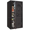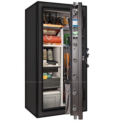 Покрытие: Автомобильный металлик глянцевый «стальной» с градиентом цвета. Корпус имеет более тёмное покрытие относительно покрытия двери. Универсальный сейф, может использоваться как в качестве оружейного сейфа, так и в качестве личного сейфа. Производство Liberty Safe and Security Products, Inc (США, штат Юта). Сейфы Liberty сертифицированы на взломостойкость и огнестойкость в США. Полностью удовлетворяют требованиям МВД. Великолепный дизайн! При изготовлении покрытий для этих сейфов используется специальный декоративный автомобильный металлик, такие же покрытия используются при производстве американских автомобилей премиум класса. Сейфы изготавливаются непосредственно в США. Замок Сейф оборудован высокосекретным электронным кодовым замком Sargent & Greenleaf (США). Этот замок вы можете по вашему желанию эксплуатировать как в режиме одного кода, так и в режимах используя от 2-х до 9-и кодов. Можно использовать иерархическую систему кодов: мастер-код – код руководителя – пользовательские коды. Инновационная защита замка – закалённой пластиной с вращающимися шариками. Шарики вращаются если в них упирается сверло. Защита Усиленный корпус. Дверь усиленная коробчатой конструкции. Дополнительное усиление двери внутренней стальной плитой. Дверь оборудована мощной многосторонней ригельной запирающей системой, 18 активных ригелей диаметром 38мм. Специальные пластины внутри двери на рейках с ригелями для усиления защиты при попытке вскрытия монтировкой, рычагом и т.п. Лучший в своём классе поворотный запирающий механизм GX-540 MONSTER MECH с усиленной защитой. Увеличенный выход ригелей по сравнению с традиционными запирающими механизмами. Тип запирающего механизма - с зубчатой передачей и со смещенным центром. Этот запирающий механизм имеет лучшую защиту от бокового выбивания ригелей (по сравнению с DX-90 Monster Mech) и большую защиту от высверливания и пробивания по сравнению с другими запирающими механизмами. Инновационный привод поворотного запирающего механизма «SURETIGHT» с муфтой скольжения для защиты замка при приложении крутящего мышечного усилия при попытке взлома. Система внутренних и внешних Fail-Safe™ relocker для блокировки замка или/и запирающего механизма при механических и термических воздействиях на замок. Security Level (взломостойкость по шкале Liberty Safe) – 34. Fire Rating 1200°F (огнестойкость при температуре в испытательной печи 649°C, заданный предел огнестойкости 177°C) – 2,5H. BTU Heat Rating (огнестойкость в Британских единицах тепловой мощности) – 131,000 BTUs. Внутреннее устройство Внутри сейфа ложементы и полки, съёмные с регулируемой высотой установки. Внутренняя поверхность корпуса, а также внутренние элементы имеют мягкую отделку. Сейф имеет удобный выдвижной ящик для хранения драгоценностей. Внутренняя поверхность двери сейфа имеет держатели для пистолетов, карманы, держатели для ножей и т.п., удобные закрывающиеся сумки. Так же имеется специальнй закрывающийся пакет COOL POCKET™ для хранения особо важных документов. Он изготовлен из специальных материалов и обеспечивает дополнительную тепловую защиту. Сейф имеет электрическую светодиодную подсветку с датчиком движения. Подсветка включается автоматически при открывании двери сейфа. Сейф укомплектован внутренним электрическим осушителем конвекционного типа. Для подключения подсветки и осушителя к Российской элект