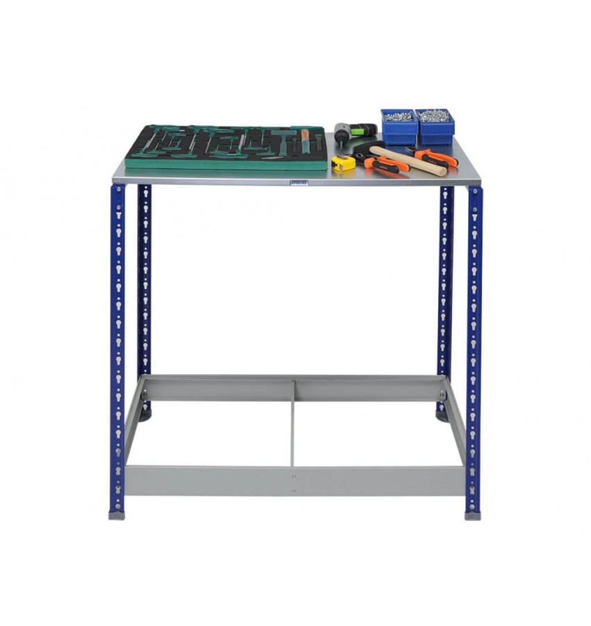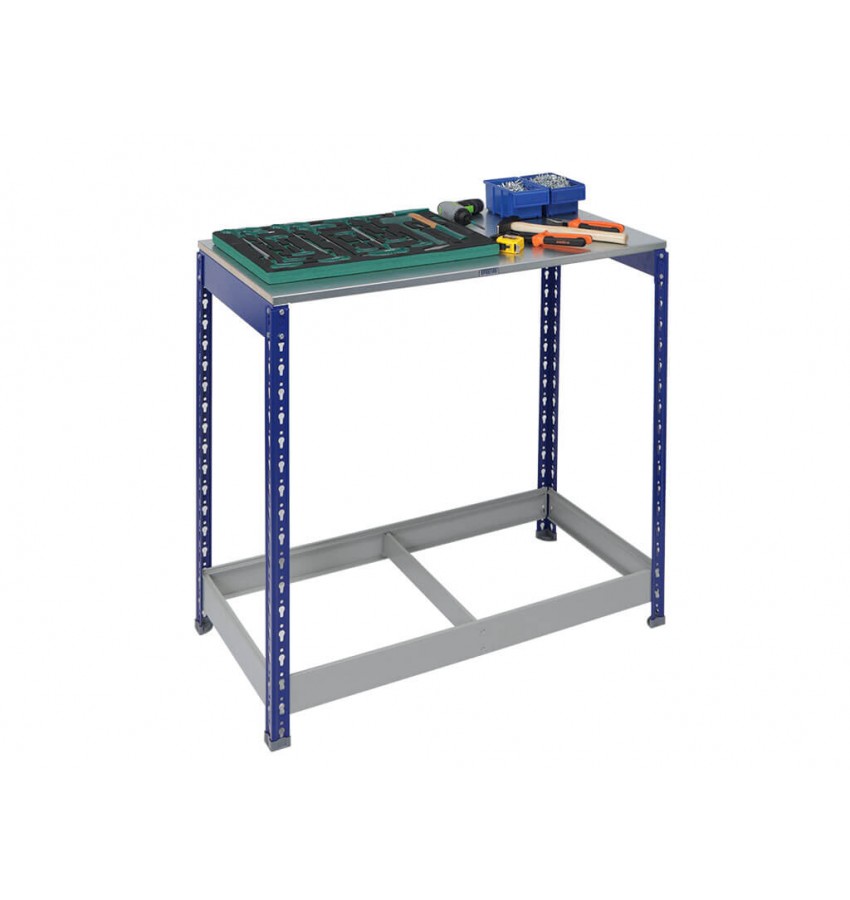 - Верстак оснащен ярусом, выполненным из стеллажных балок SB, толщиной 1.2 мм.