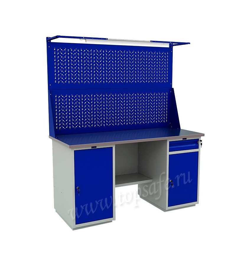 ОписаниеВерстак Практик WT 160.WD1/WD2.021 предназначен для обустройства комфортного рабочего места для работы по дереву и металлу. Комплектация: столешница WT-160, опора WF-1, полка и стенка WSh-160/2, тумба WD1, тумба WD2, два перфорированных экрана и комплект светодиодного освещения.