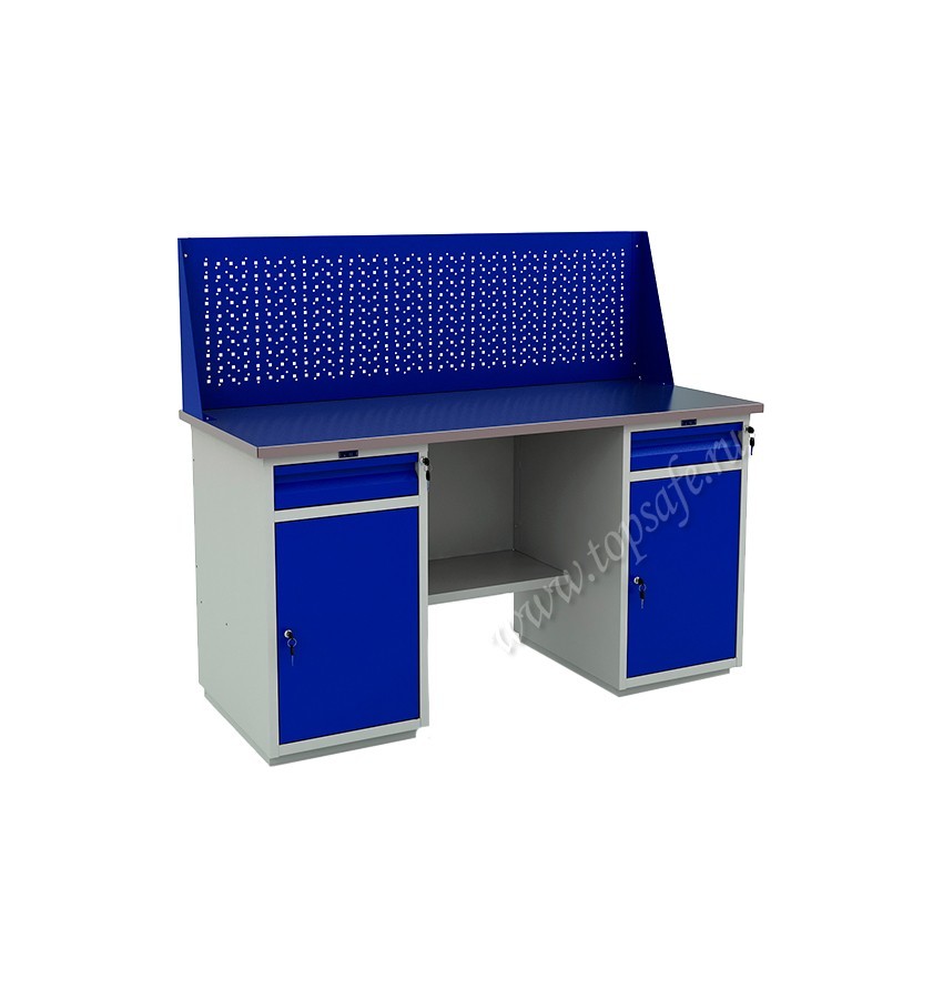 ОписаниеВерстак Практик WT 160.WD2/WD2.010 предназначен для проведения различных работ по дереву и металлу. Оборудован двумя тумбами и перфорированным экраном для удобного расположения и хранения инструментов. Тумбы запираются на ключ. Имеют по 2 съемные полки и по 2 выдвижных ящика на телескопических направляющих. Нагрузка на полку/ящик - до 30 кг.