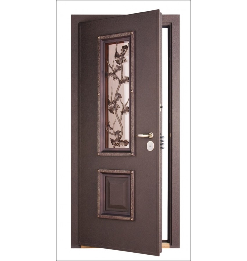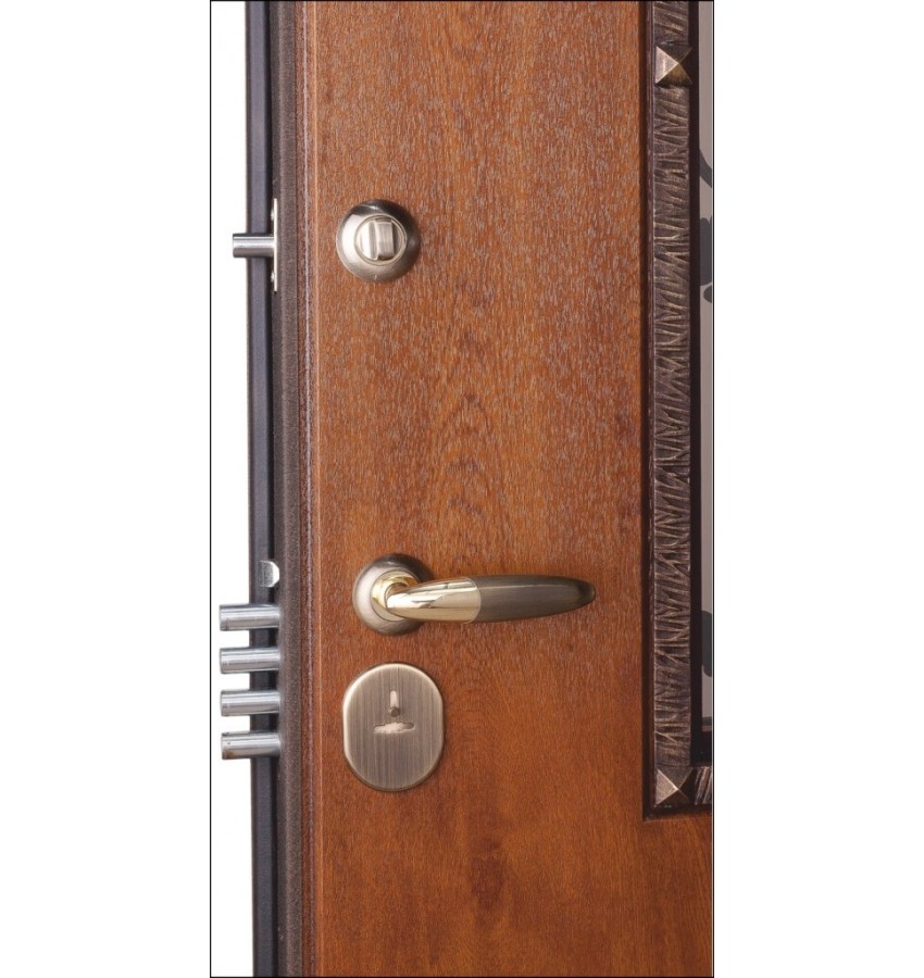 ОписаниеТехнические характеристики: - Увеличенная толщина дверного полотна 90мм. - Усиленные скрытые петли с подшипником по системе «easy rolling» - 3шт. - Два контура уплотнителя (на дверном полотне и коробке). - Заполнение дверного полотна - минеральная вата URSA в два слоя. - Стеклопакет в оконный проем – двухкамерный. - Накладка на порог («нержавейка», латунь – в зависимости от цвета фурнитуры). - Два противосъемных штыря. - Планка регулировки притвора. - Гарантия 5 лет. Внешняя отделка: Грунт коррозионностойкий полимерный “Базальт” + порошковый окрас: “Бронзовая кожа” (№57). Внутренняя отделка (складская программа): МДФ (16мм) с фрезеровкой с пленкой ПВХ “Белое дерево“, с патиной “Серебро“; “GOLDEN OAK” с патиной “Орех“. (комплектация по запросу, без доплаты): Пленка ПВХ категории “А” на выбор. Отделка: Решетка «Дубовая ветвь» + нижний кованый элемент 3D декоративный - “Медный муар” (№25), патина “Золото“. Замок: Врезной замок MOTTURA 52J535 (класс защиты 4) с перекодировкой. Фурнитура: Ручка SFERA; Ручка к задвижке замка; Ответная планка для регулировки притвора. Цвет фурнитуры: бронза. Размерный ряд (может быть расширен по запросу): 900 х 2050 мм 960 х 2050 мм 900 х 2080 мм 960 х 2080 мм ДоставкаСтоимость доставки по Москве в пределах МКАД: при заказе от 20 000 рублей бесплатно, менее 20000 руб - 1200 рублей Доставка возможна на 16.12.2025 или на 17.12.2025 Доставка по РФ и СНГ: по тарифам транспортных компаний Стоимость разгрузки: нет данных СамовывозСамовывоз: со склада, после после подтверждения заказа ОплатаОплата: наличными при получении товара, безналичный расчет ( 100% предоплата) Входная дверь Stardis Cottage Prestige Bronze |