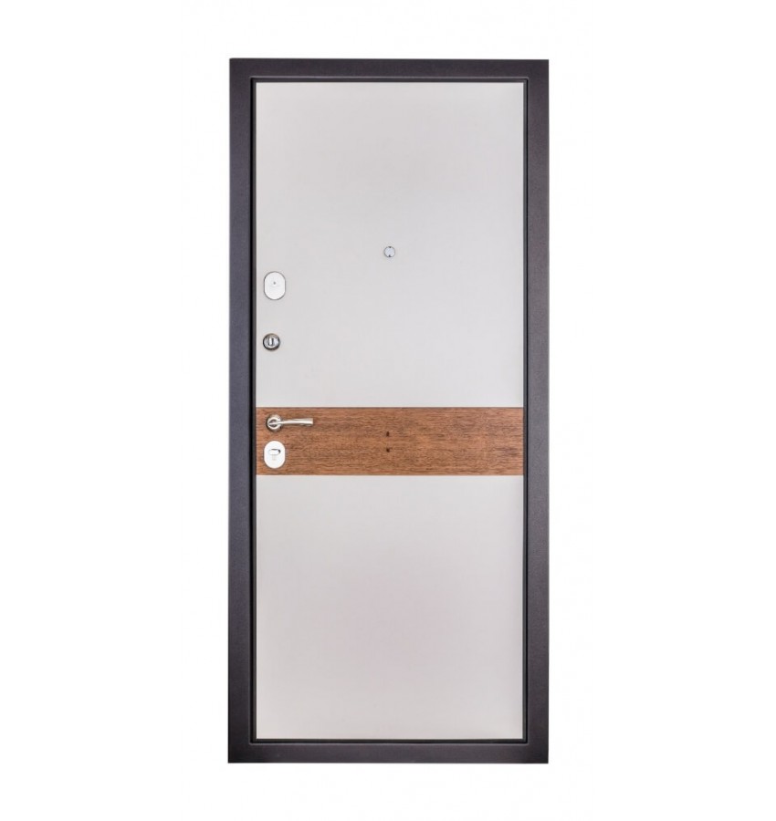 Фурнитура: Броненакладка FUARO на цилиндровый механизм; Ручка PREMYER; Ответная планка для регулировки притвора; Глазок широкоугольный.