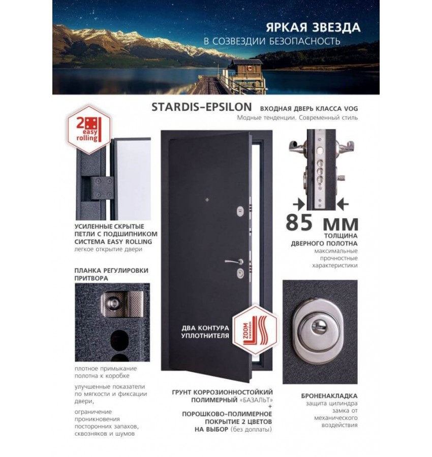 860 х 2000 мм 900 х 2000 мм 960 х 2000 мм ДоставкаСтоимость доставки по Москве в пределах МКАД: при заказе от 20 000 рублей бесплатно, менее 20000 руб - 1200 рублей Доставка возможна на 06.12.2025 или на 07.12.2025 Доставка по РФ и СНГ: по тарифам транспортных компаний Стоимость разгрузки: нет данных СамовывозСамовывоз: со склада, после после подтверждения заказа ОплатаОплата: наличными при получении товара, безналичный расчет ( 100% предоплата) Входная дверь Stardis Epsilon |