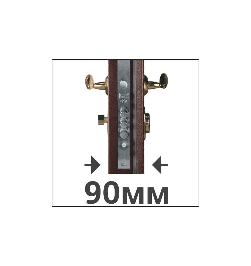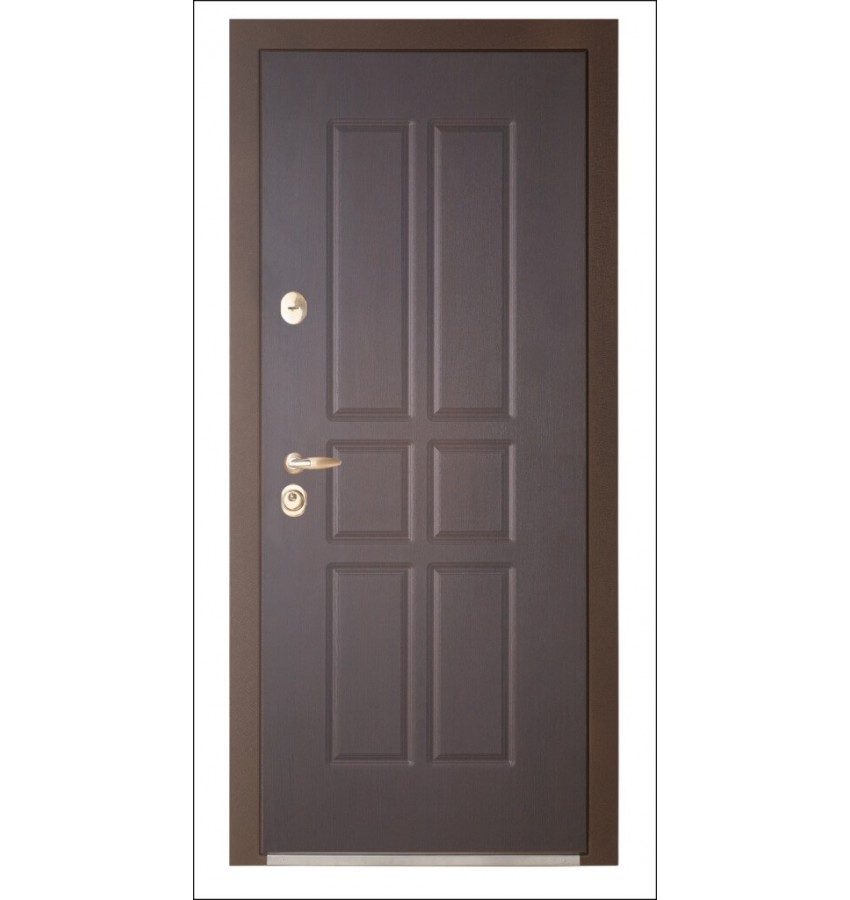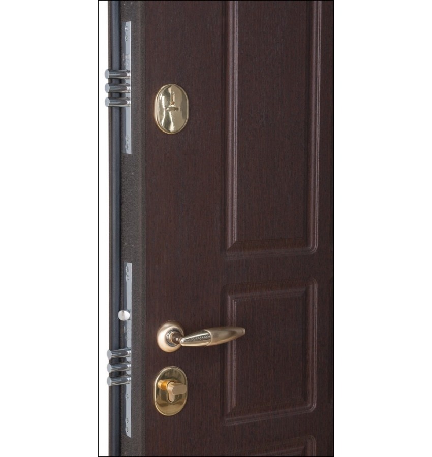 Внутренняя отделка (складская программа): МДФ 10мм фрезерованная №9, №71 с пленкой ПВХ “Орех миланский”, “Орех тисненый”, “Орех премиум“, “Патина премиум“. (комплектация по запросу, без доплаты): МДФ фрезеровка из коллекции “Классика”, “Авангард” (на выбор). Пленка ПВХ категории “А” на выбор (без доплаты). Верхний замок: Врезной сувальдный замок KALE 257L (класс защиты 3).