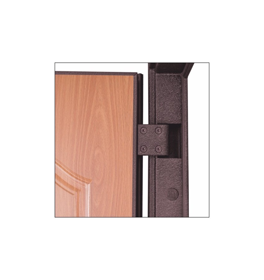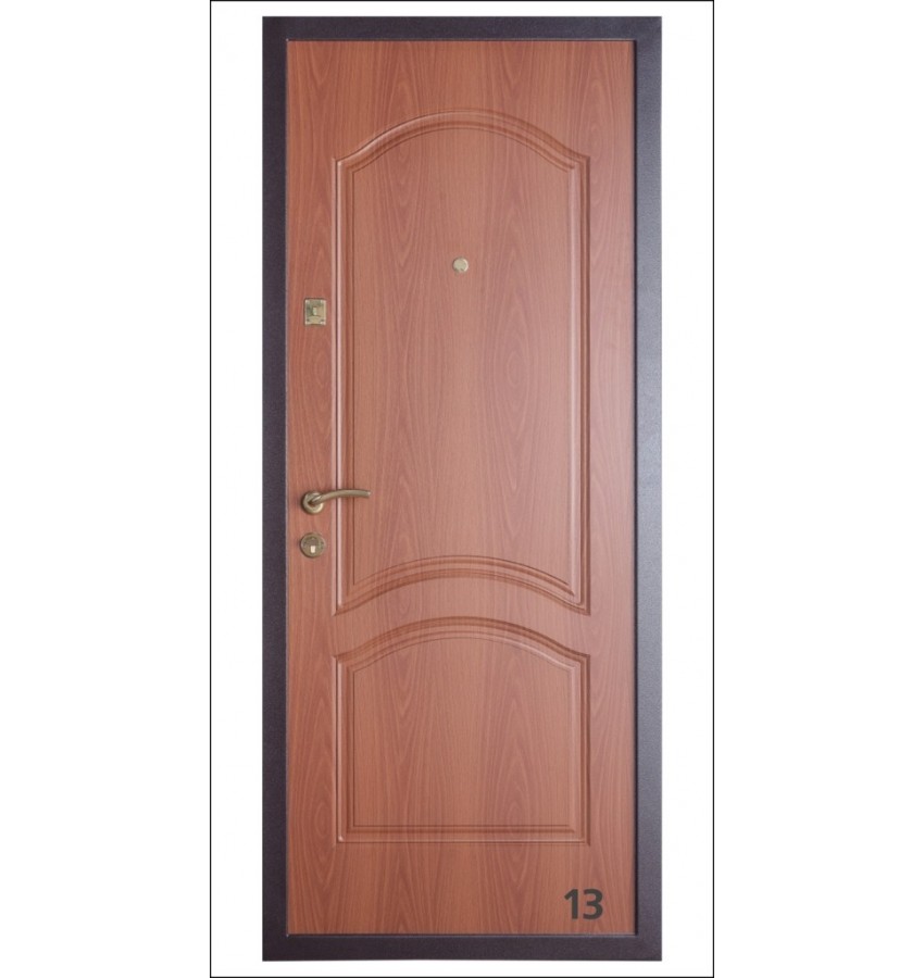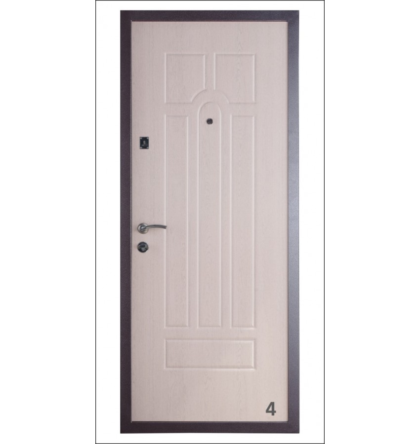 Фурнитура: Броненакладка FUARO на цилиндровый механизм; Ручка 96А; Ответная планка для регулировки притвора; Глазок широкоугольный.