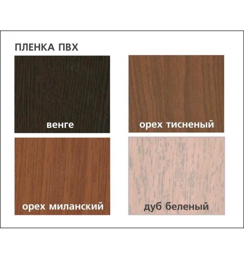 Внутренняя отделка (складская программа): МДФ (6мм) фрезеровка №4, №13 с пленкой ПВХ - “Орех Миланский”, “Венге”, “Дуб беленый”, “Орех тисненый”.