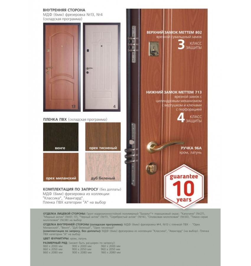 Верхний замок: Врезной сувальдный замок МЕТТЕМ 802 (класс защиты 3).